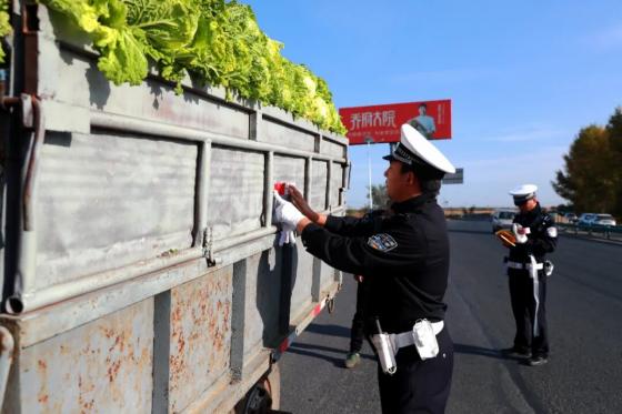 保障安全是底线,但宣传方式可以更贴心。交管部门将巡逻车变成了“移动宣传站”,不再仅限于路面检查,更主动走进大型秋菜批发市场,向菜农发放印有安全提示的挪车电话卡和反光贴纸。“您这车晚上开,反光条必须贴好,这是给后方司机看的‘安全信号’!”一句句家常式的叮嘱,代替了生硬的说教。这种上门式、面对面的贴心服务,将安全隐患消除在萌芽状态,筑牢了秋菜季的交通安全防线。
