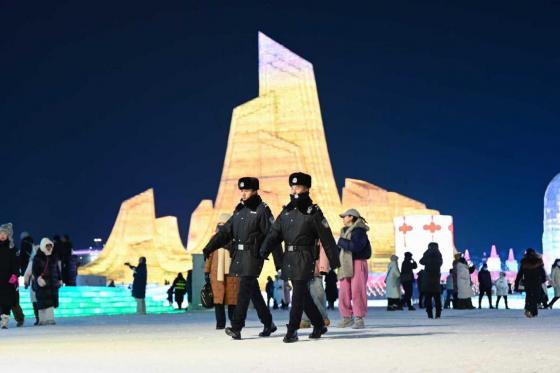 “您好!请照看好身边的小孩,留意脚下安全。”在游客聚集区域,巡逻民警的温馨提醒不绝于耳。面对太阳岛、冰雪大世界等热门景区大客流的严峻考验,松北分局积极创新警务模式,与景区运营方建立完善安保方案,共同绘制精细化“安保防控图”,在热门点位设置引导标识,优化游览动线。在此基础上,派出所构建立体巡防体系,通过“车巡+步巡+视频巡+无人机巡”相结合的方式,实现重点区域全天候覆盖。同时,将太阳岛等景区划分为多个网格,民警与景区管理员、“冰城红警”共同进驻,就近开展安全提示、人流疏导和应急帮助,让游客玩得有序又安心。