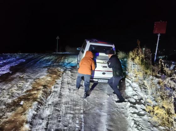 “这雪下得也太大了,车子怎么都推不动了!” 晚上20时许,通河县公安局清河派出所民警巡逻至西北河村路段时,隐约听到路边传来焦急的呼喊声。民警立即下车查看,只见一辆电动车歪在路边的积雪里,车轮在原地不停打滑,车主正冒着寒风,费力地试图将车推到平整路面,却始终徒劳。