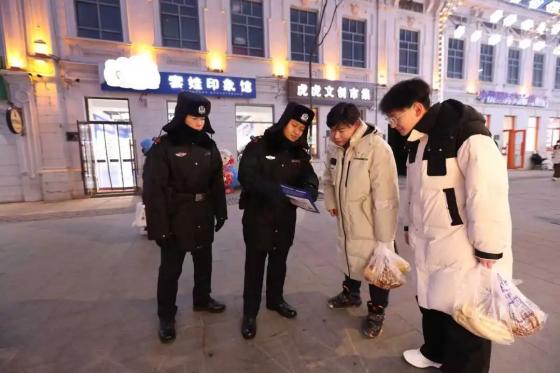 不同于传统刻板的宣传模式,冰城公安将反诈宣传与景区场景深度融合,打造“固定阵地+流动宣讲”的立体模式。民警穿梭在景区的各个角落,成为流动的反诈宣传员,针对不同年龄段游客开展精准宣讲,景区商户也主动加入反诈队伍,在收银台摆放宣传单,提醒游客消费时提高警惕,形成全民反诈的良好氛围。