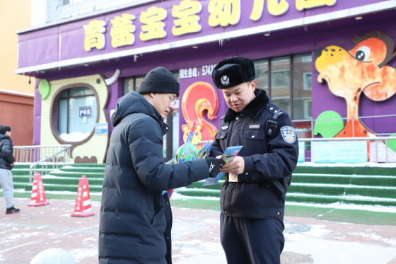 面对孩子,民警的劝导则多了几分呵护。在木兰县,民警发现两名小朋友正准备玩摔炮,立即上前制止:“小朋友,摔炮虽然小,也是烟花爆竹,不小心也容易炸伤小手、伤到眼睛。”随后,民警联系家长,提醒他们履行好监护责任,建议用更安全的方式庆祝新年。