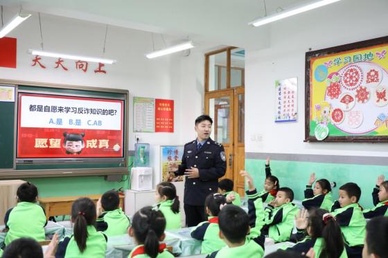 在“开学第一课”的课堂上,法治副校长围绕四大重点内容开展宣讲。在防范电信网络诈骗方面,结合“冒充客服退款诈骗”和“免费领取游戏皮肤”陷阱,现场复盘被骗学生因点击虚假链接导致家长银行卡被盗刷的案例,拆解诈骗分子的犯罪伎俩;在道路交通安全方面,着重讲解步行、骑行、乘车安全规范,现场演示“一盔一带”正确用法,引导学生平安出行;在毒品危害防范方面,讲解新型毒品伪装性与危害性,针对极具迷惑性的“奶茶粉”“跳跳糖”等新型毒品,拿出仿真模型对比讲解,剖析了“一次尝试,终生悔恨”的真实案例;在防范校园欺凌与法治教育方面,结合新修订的《中华人民共和国治安管理处罚法》,讲解应对方法与求助渠道,鼓励学生维护自身合法权益。通过将“身边案”融入“课堂讲”,把“仿真模型”搬进“小课堂”,法治副校长用专业的法律知识为学生划清行为边界,用真情关怀温暖成长之路,让安全意识在孩子心中生根发芽。