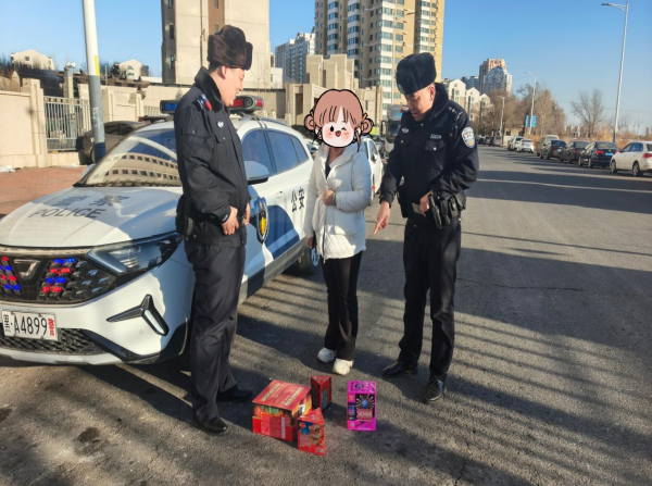 2月24日下午,呼兰分局公园路派出所民警巡逻至某小区附近,突然发现一位居民正要燃放烟花爆竹。发现情况后,民警立即上前制止,一边现场讲解禁放规定,一边介绍燃放烟花爆竹带来的火灾风险、环境污染和噪音扰民问题。经过耐心劝阻与沟通,群众认识到了不妥之处,主动将烟花爆竹上交给了民警。